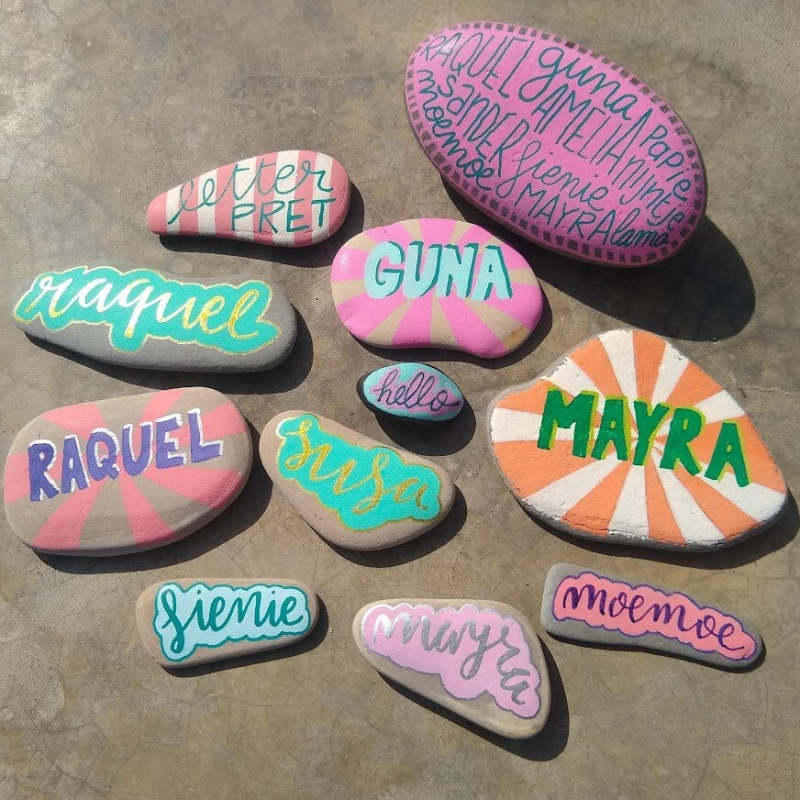 Letters, love them! Figuratief werken levert me weinig ontspanning en vooral frustratie. Letters daarentegen, they do the job. Laten me ook toe om wat inhoud in m'n creaties te steken; en omgekeerd: de technieken geven me een manier om creatief m'n boodschap te brengen. Handletteren, brushletteren, banners maken, happy stones, stempelen, schilderen, branden in leer, embossen in metaal, plooien en knippen,... Eindeloze letterpret! Digitaal is niet waar ik blij van word, dus hoera analoog!