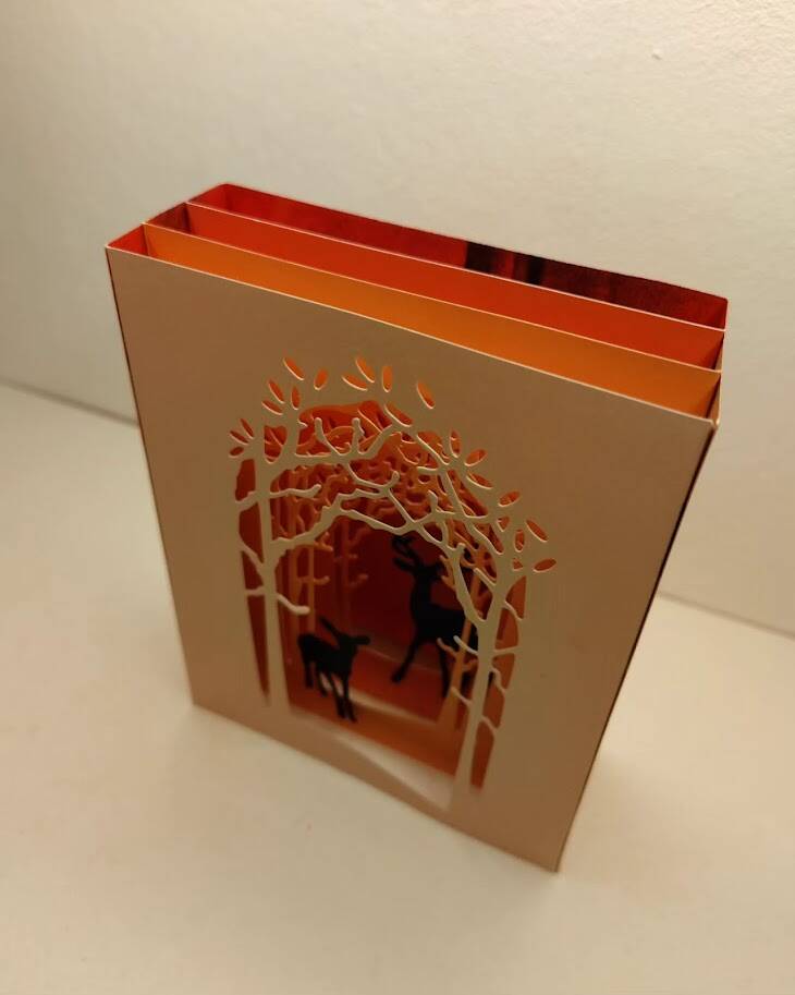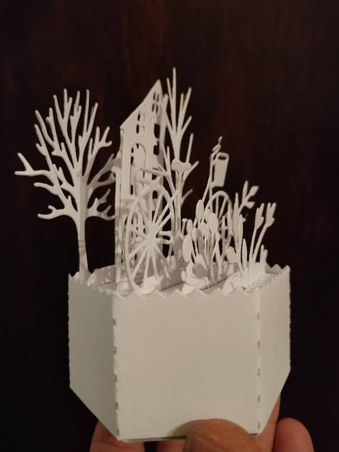 Kaartjes met dimensie. Verschillende mechanismes, maar wat ze allemaal gemeen hebben: ze kunnen helemaal plat en in een envelop en kunnen dus helemaal als een normale brief verstuurd worden. Met een simpele vouwbeweging krijgt de ontvanger de dimensie er weer in. Ze bestaan volledig uit papier, en af en toe eens een elastiekje.
